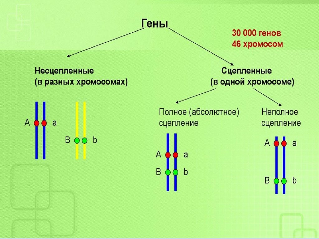 1.Гены располагаются в хромосомах; различные хромосомы содержат