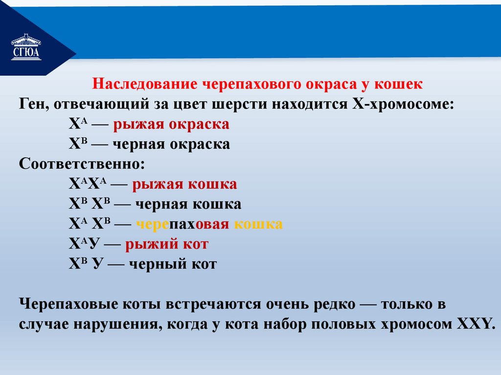 Ген, отвечающий за цвет шерсти находится Х-хромосоме: