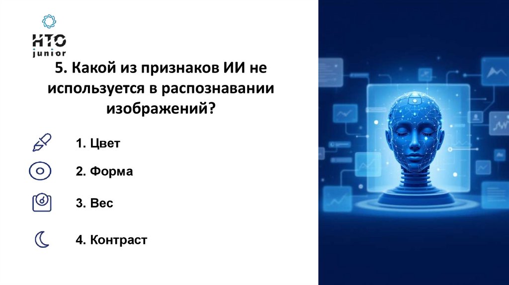 5. Какой из признаков ИИ неиспользуется в распознавании