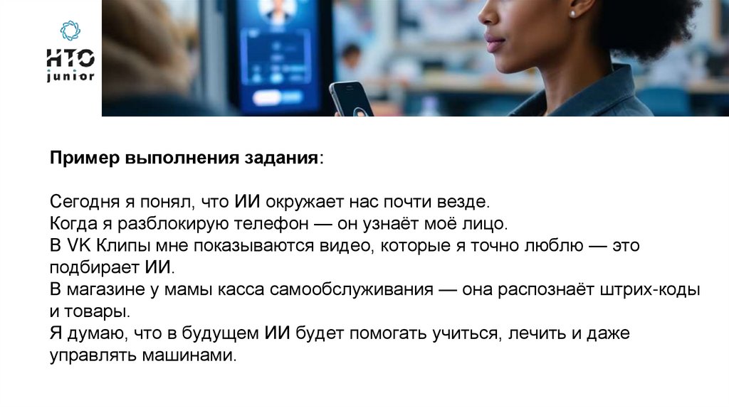 Пример выполнения задания:Сегодня я понял, что ИИ окружает нас почти везде.