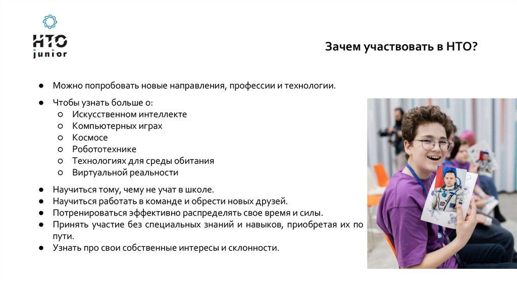Зачем участвовать в НТО?● Можно попробовать новые направления, профессии и технологии.