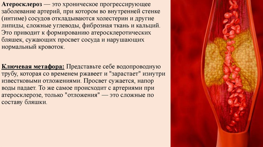 Атеросклероз — это хроническое прогрессирующеезаболевание артерий, при котором во внутренней стенке