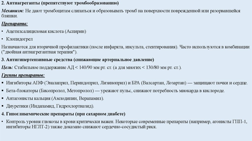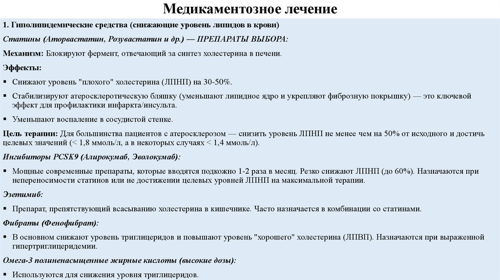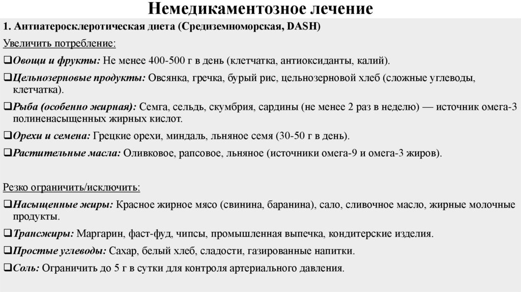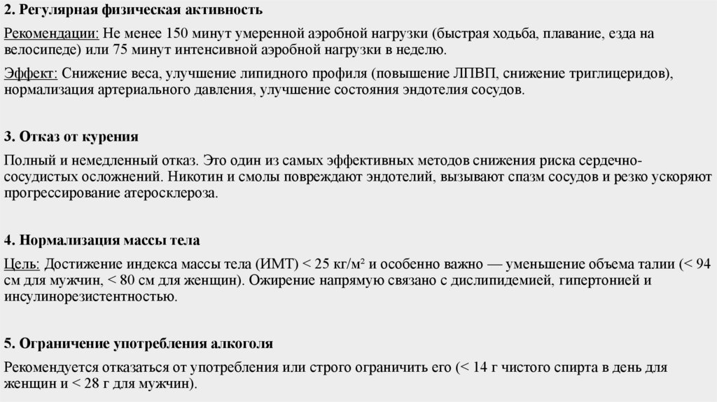 Основная цель: Достижение целевых значений артериального давления, холестерина; значительное