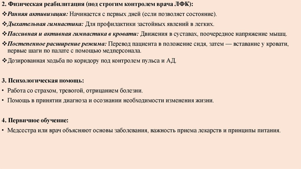 Занятия в кабинете ЛФК или кардиологическом реабилитационном центре.