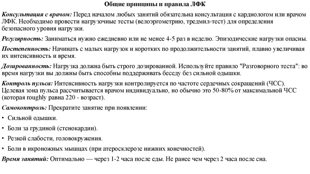Особенности: Все нагрузки должны быть ниже порога, вызывающего приступ стенокардии. Исключаются упражнения с резким