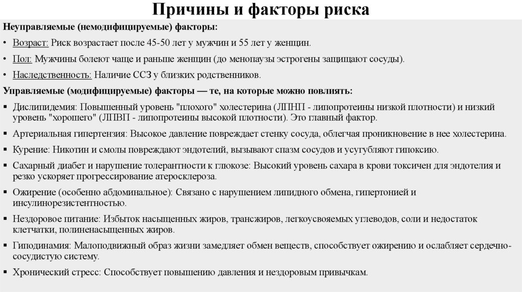 Причины и факторы рискаНеуправляемые (немодифицируемые) факторы: