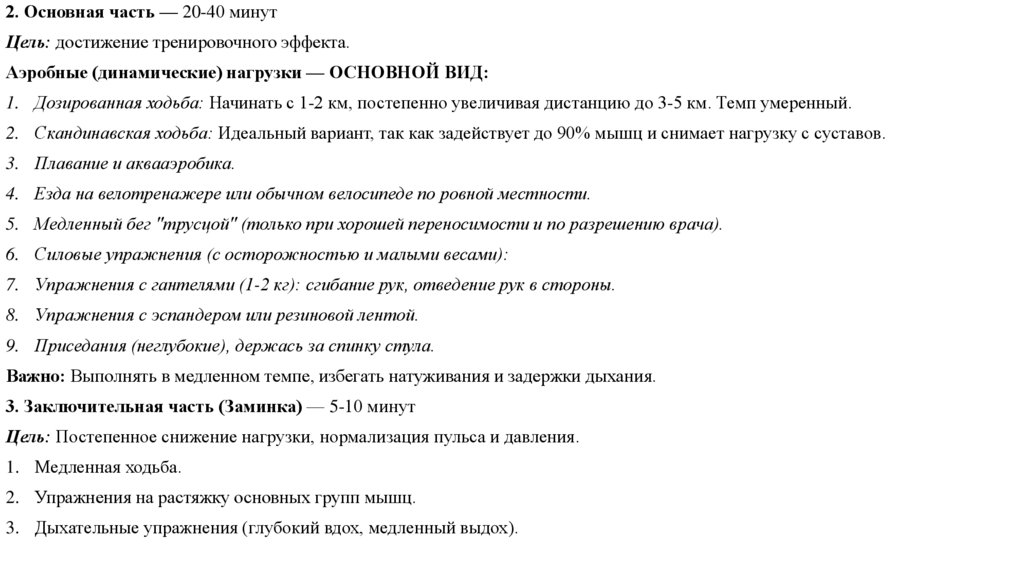 1. Дозированная ходьба: Начинать с 1-2 км, постепенно увеличивая дистанцию до 3-5 км. Темп умеренный.