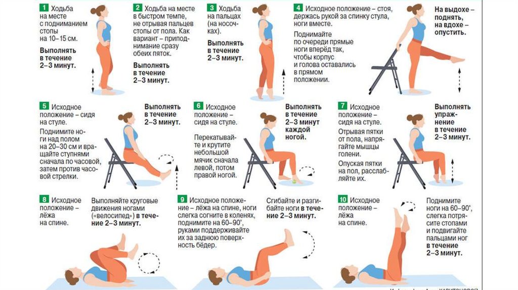• Включить упражнения на равновесие и координацию (стояние на одной ноге, ходьба по прямой линии).