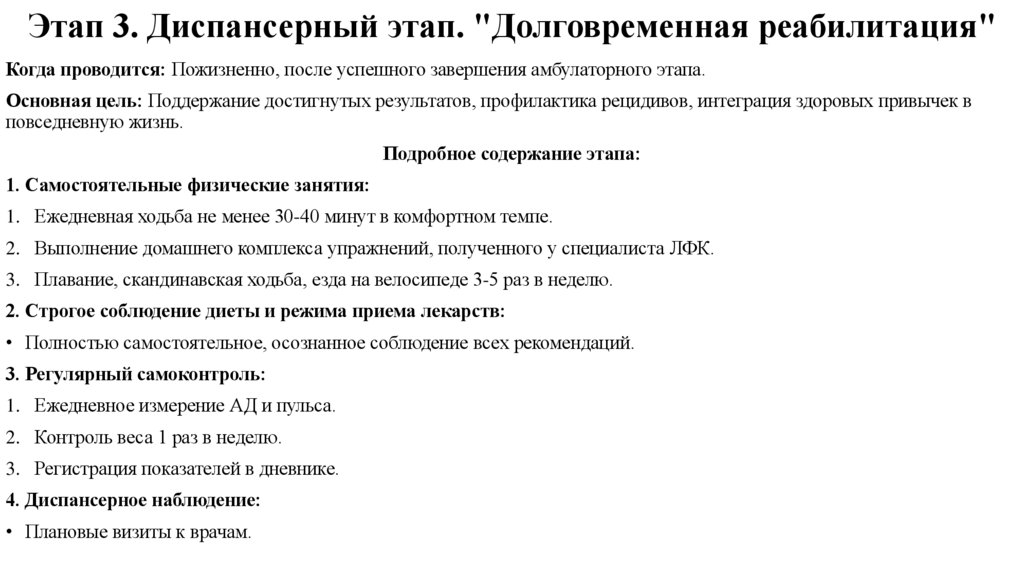 Этап 3. Диспансерный этап. "Долговременная реабилитация"Когда проводится: Пожизненно, после успешного завершения амбулаторного этапа.