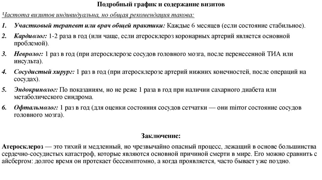 Подробный график и содержание визитовЧастота визитов индивидуальна, но общая рекомендация такова:
