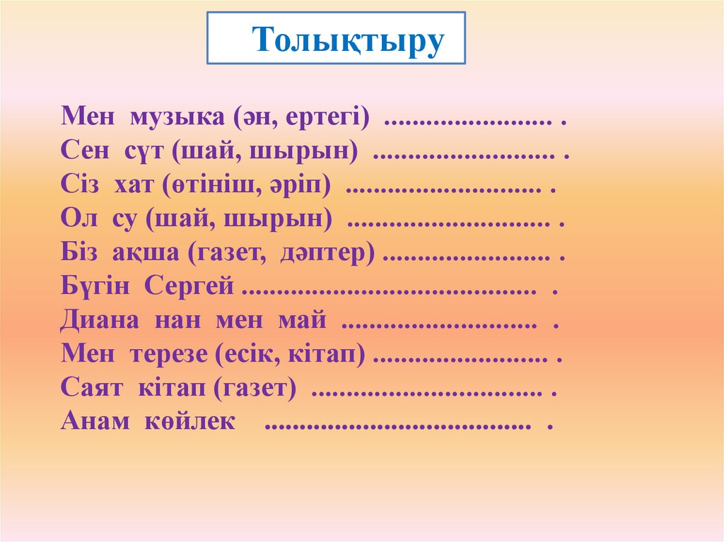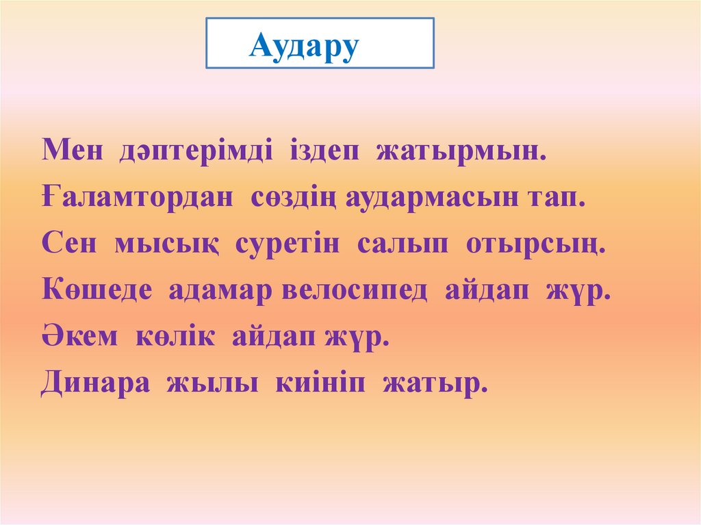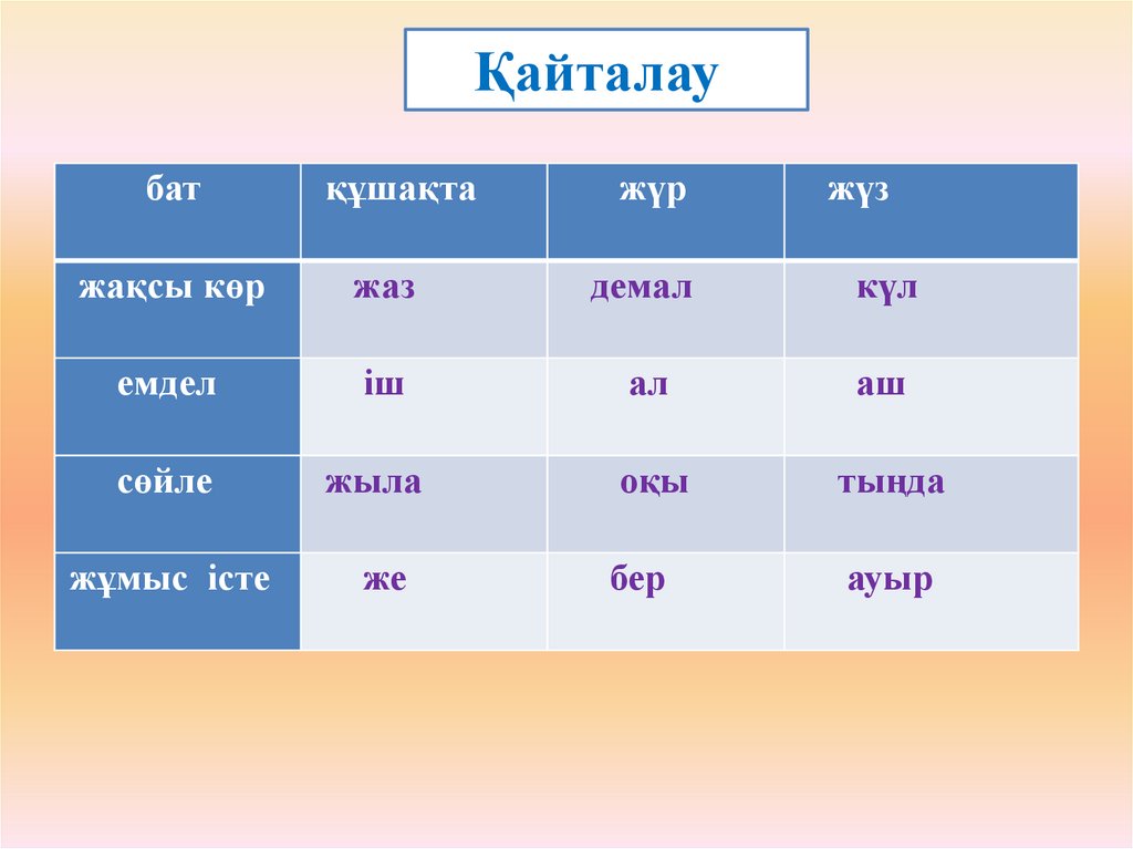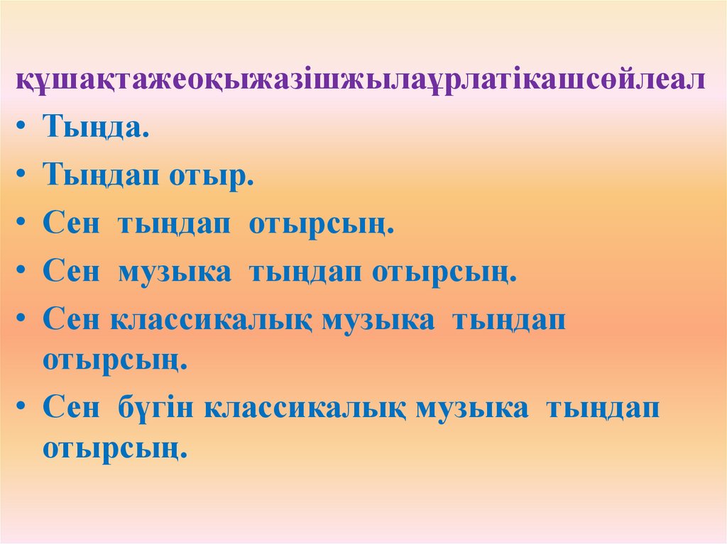 құшақтажеоқыжазішжылаұрлатікашсөйлеал• Тыңда.