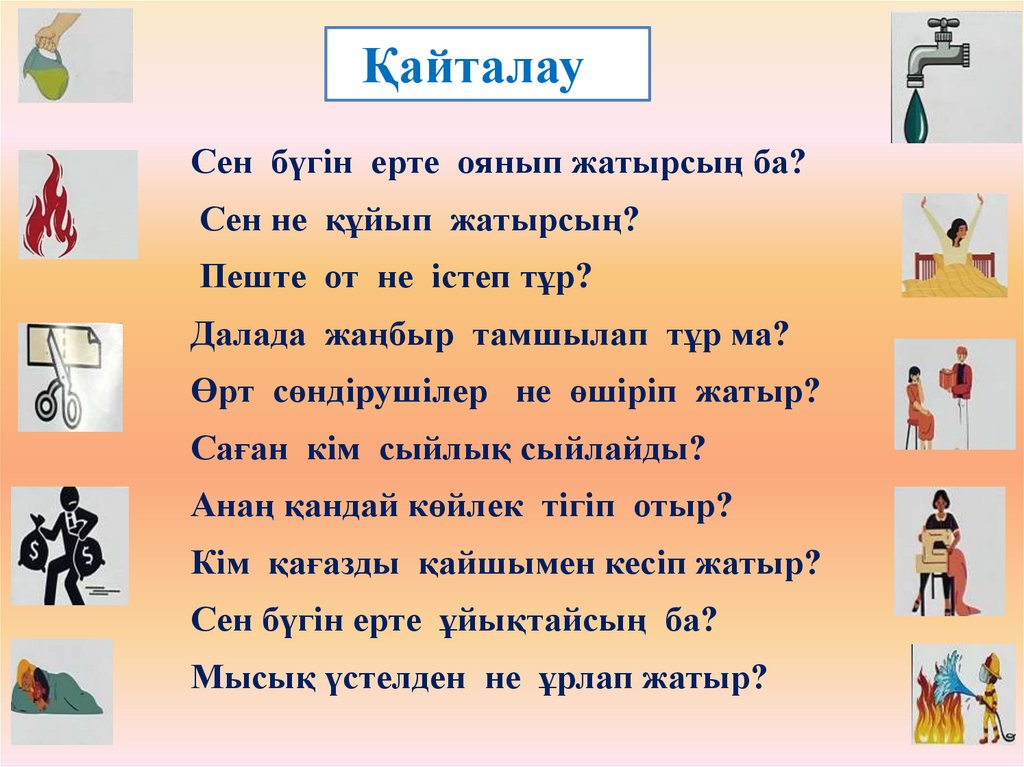 ҚайталауСен бүгін ерте оянып жатырсың ба?