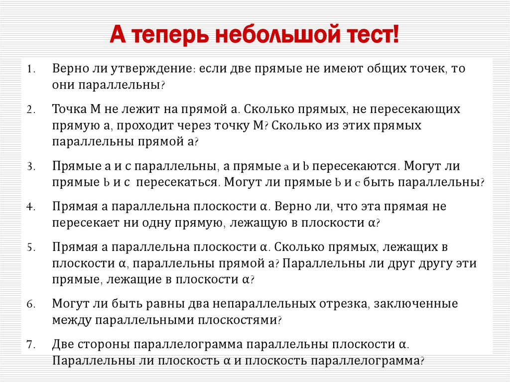 Прямая а параллельна плоскости α. Верно ли, что эта прямая не