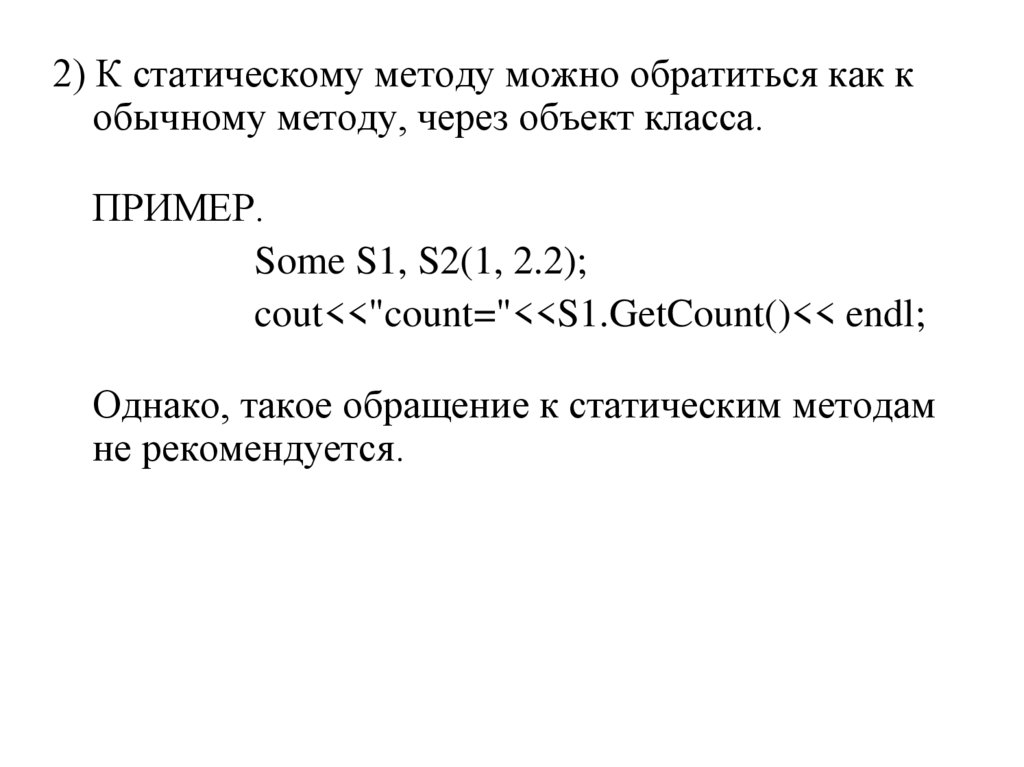 2) К статическому методу можно обратиться как кобычному методу, через объект класса.