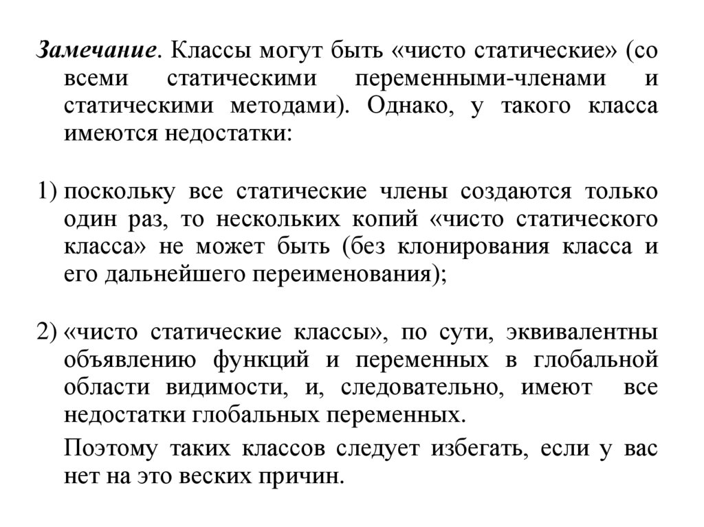 Замечание. Классы могут быть «чисто статические» (совсеми