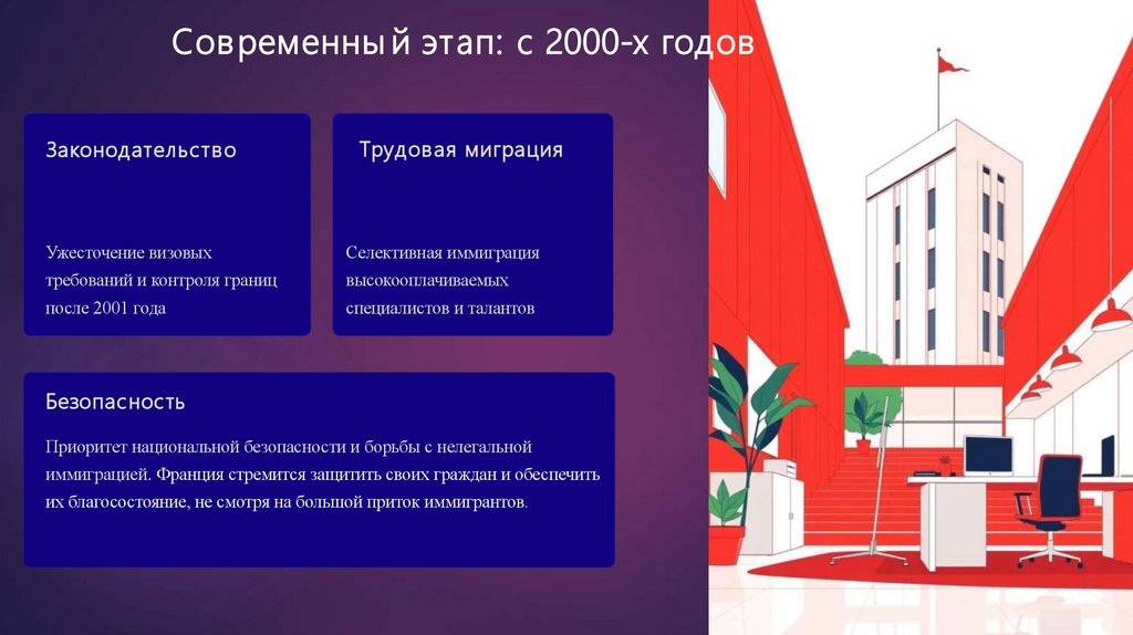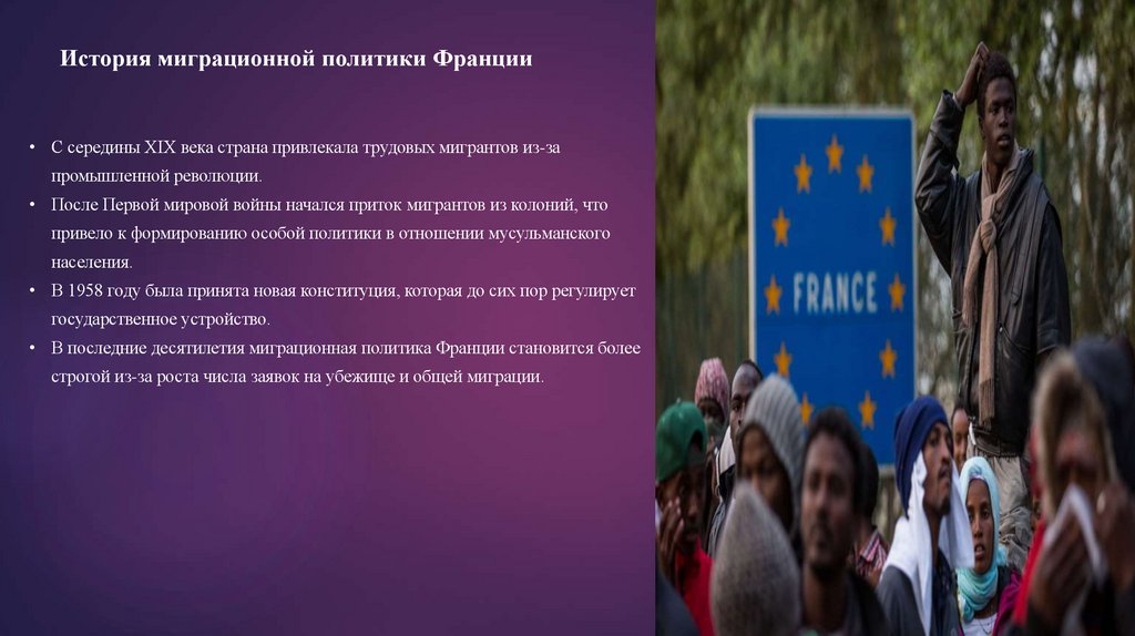 История миграционной политики Франции• С середины XIX века страна привлекала трудовых мигрантов из-за