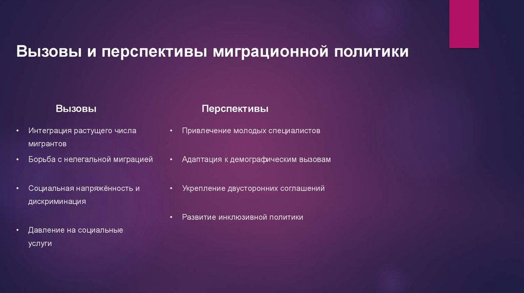 Вызовы и перспективы миграционной политикиВызовы