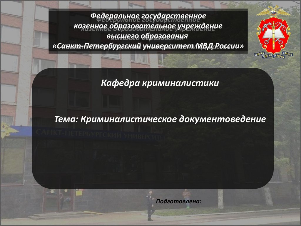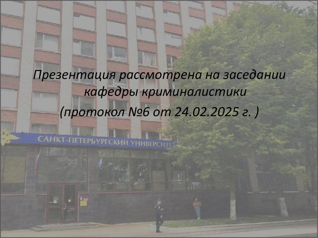Презентация рассмотрена на заседаниикафедры криминалистики