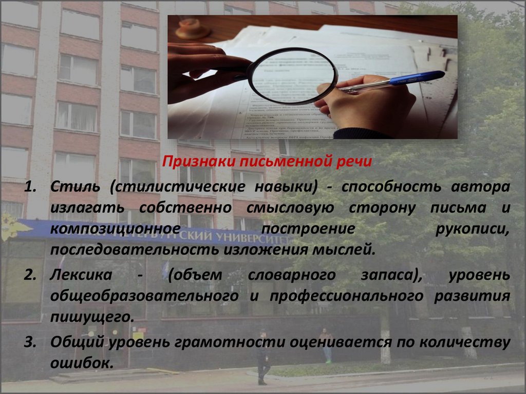1) исследование письменной речи