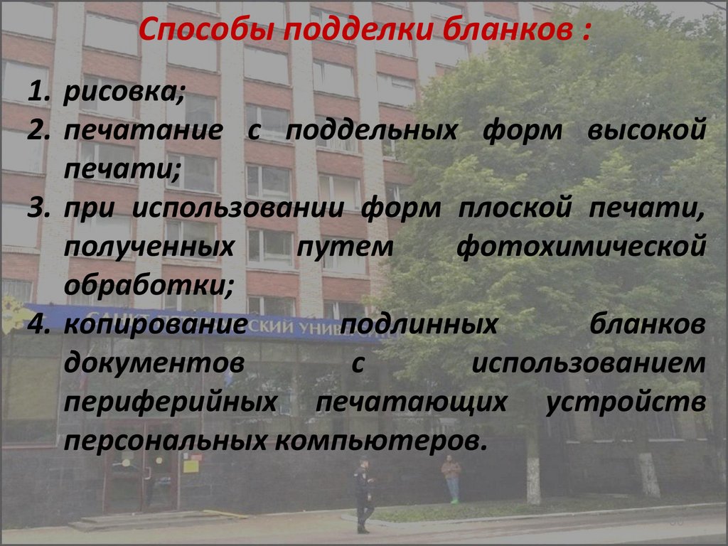 изготовления бланка, нанесения отдельных