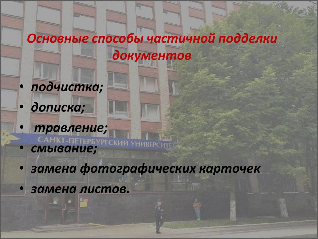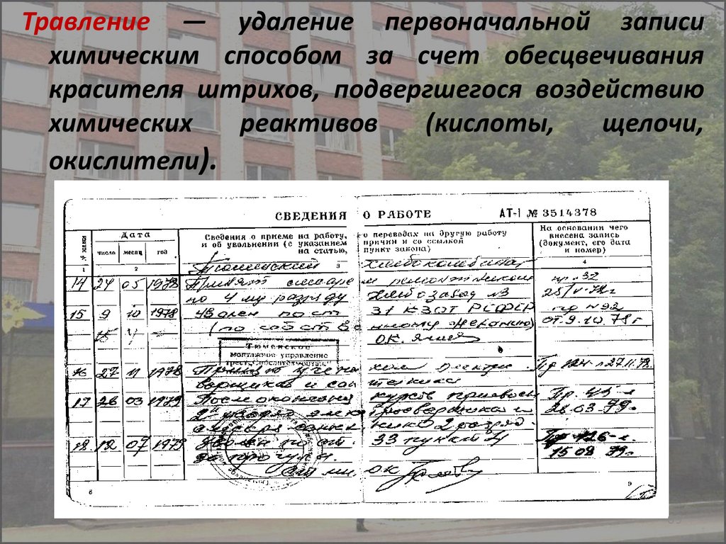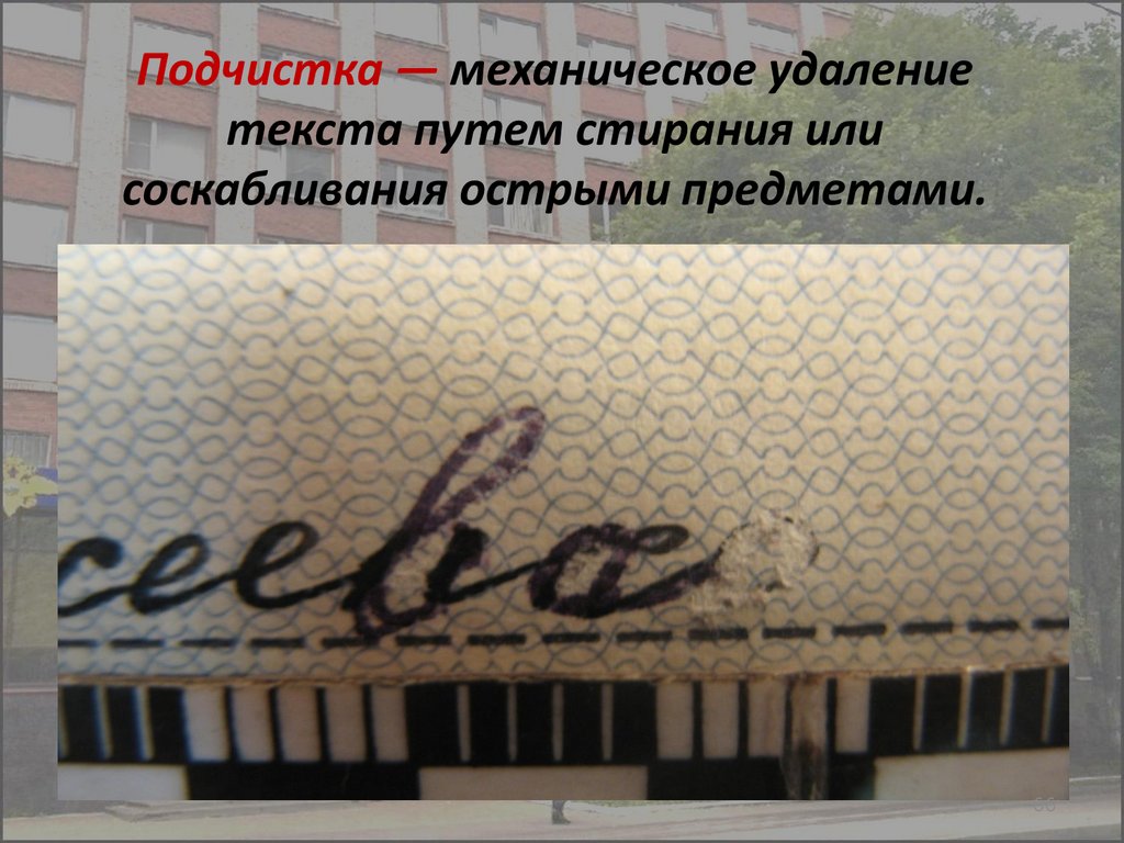 Подчистка — механическое удалениетекста путем стирания или