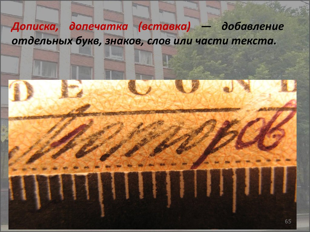 Дописка, допечатка (вставка) — добавлениеотдельных букв, знаков, слов или части текста.