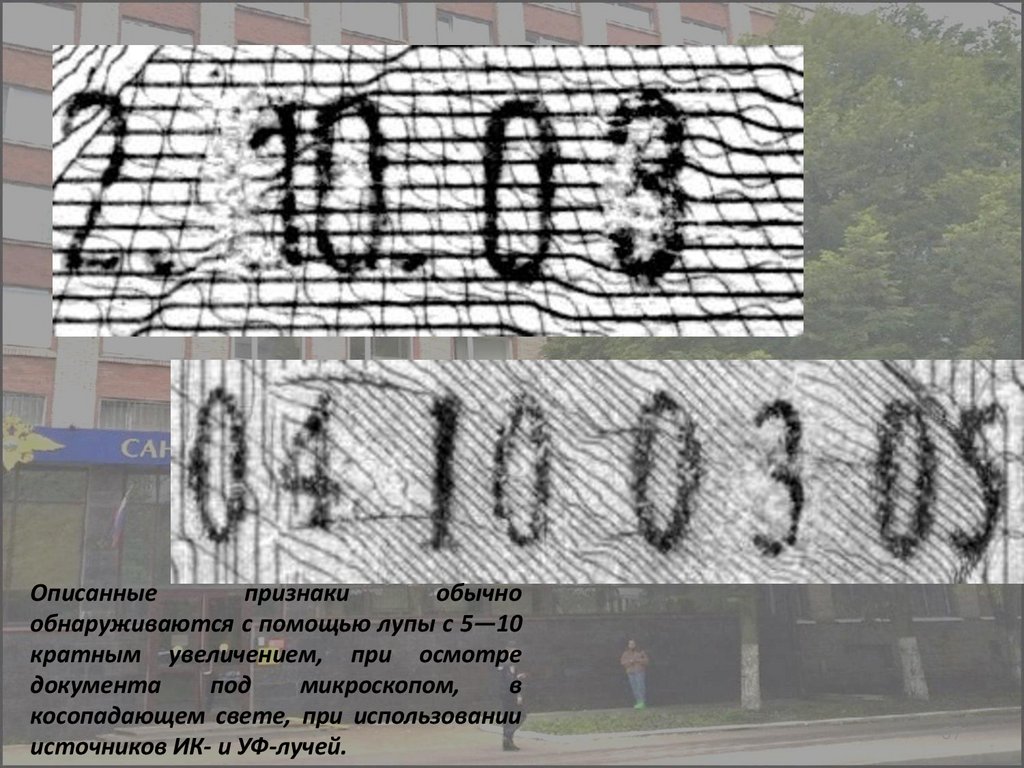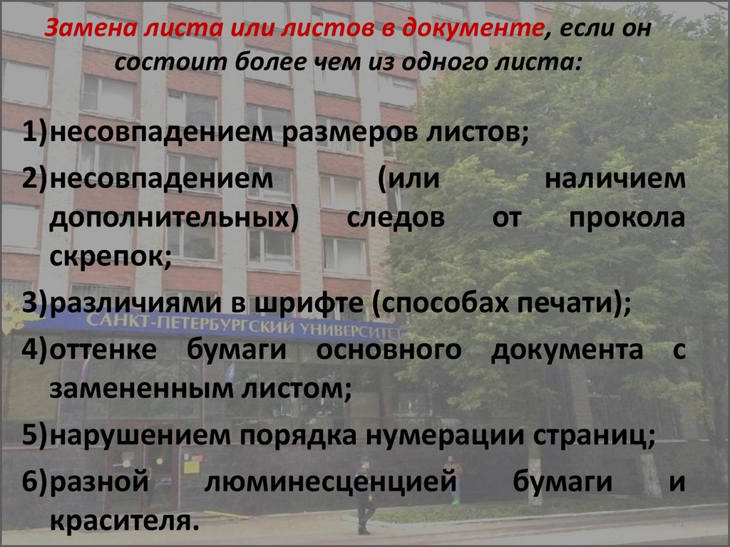 4)оттенке бумаги основного документа с