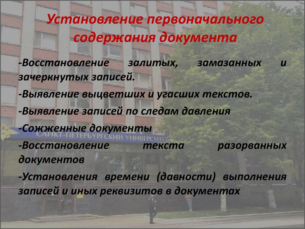 Установление первоначальногосодержания документа