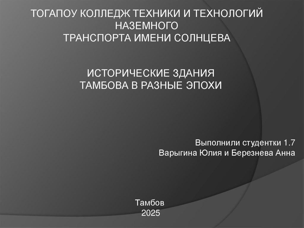 ТОГАПОУ КОЛЛЕДЖ ТЕХНИКИ И ТЕХНОЛОГИЙНАЗЕМНОГО