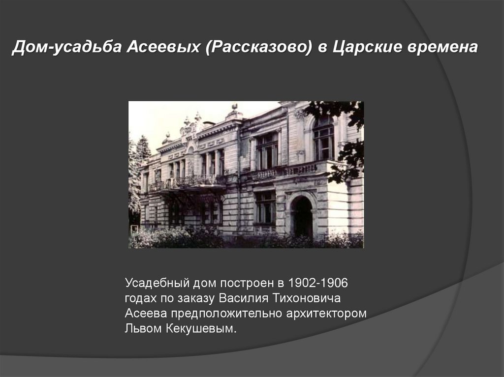 Дом-усадьба Асеевых (Рассказово) в Царские временаУсадебный дом построен в 1902-1906