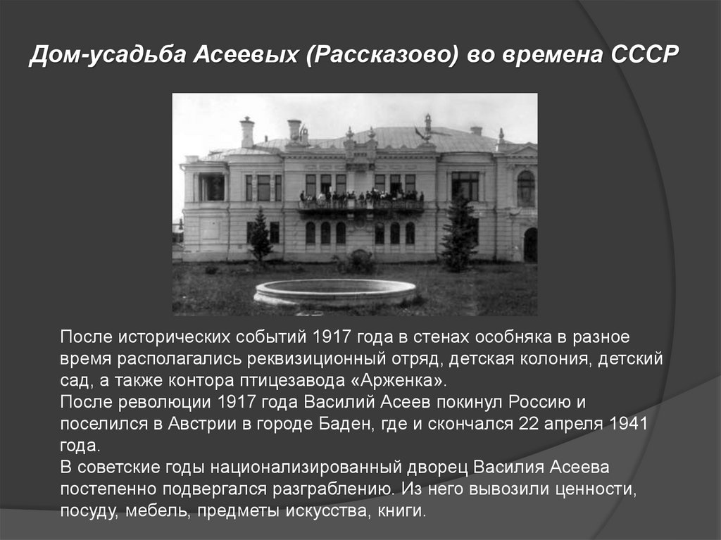 Дом-усадьба Асеевых (Рассказово) во времена СССРПосле исторических событий 1917 года в стенах особняка в разное