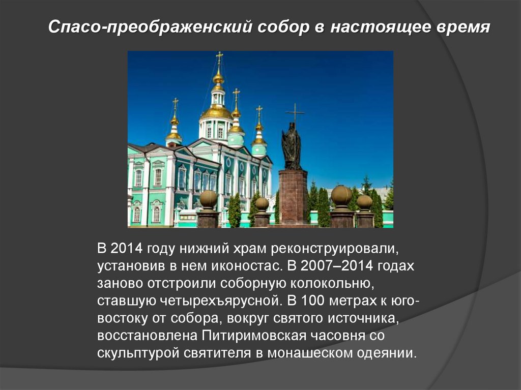 Спасо-преображенский собор в настоящее времяВ 2014 году нижний храм реконструировали,