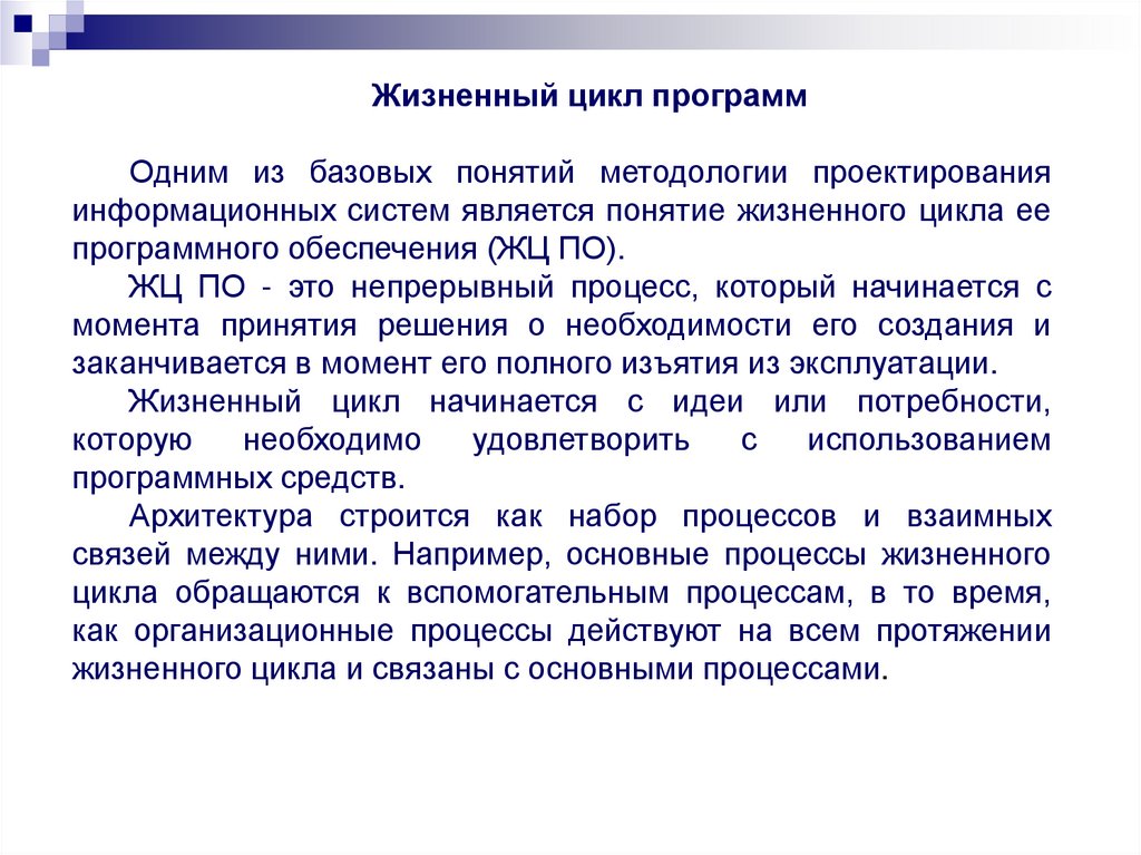 жизненного цикла (ЖЦ) ИС, представляя его как некоторую
