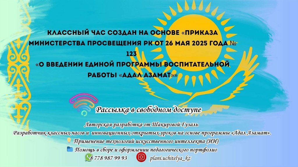 Разработчик классных часов и инновационных открытых уроков на основе программы «Адал Азамат».