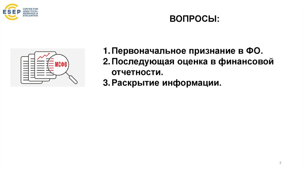 ВОПРОСЫ:1. Первоначальное признание в ФО.