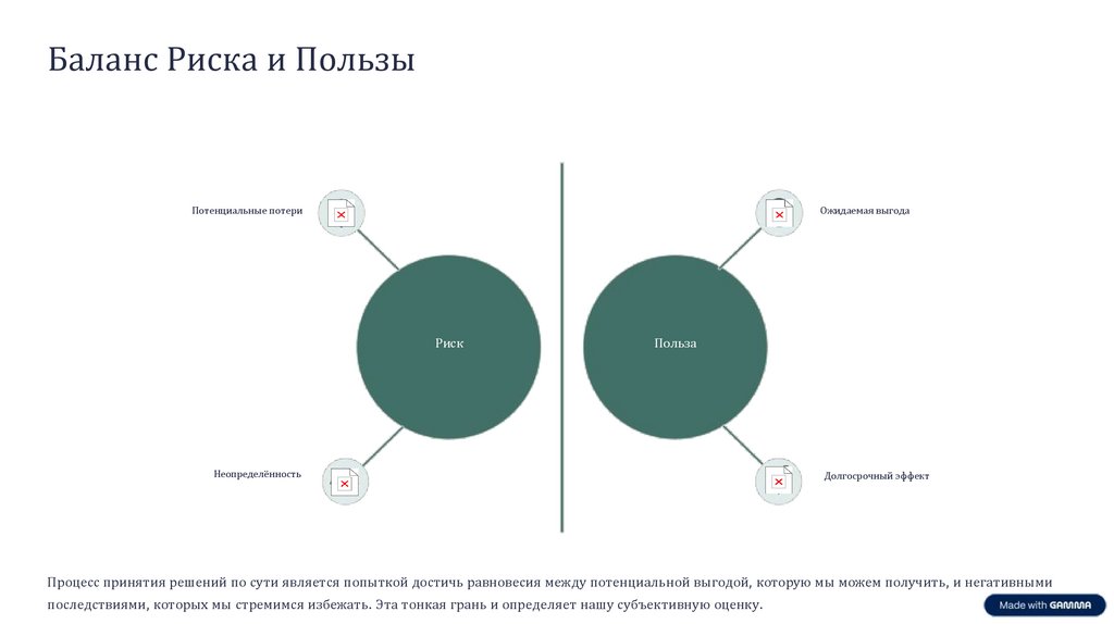 Процесс принятия решений по сути является попыткой достичь равновесия между потенциальной выгодой, которую мы можем получить, и негативными