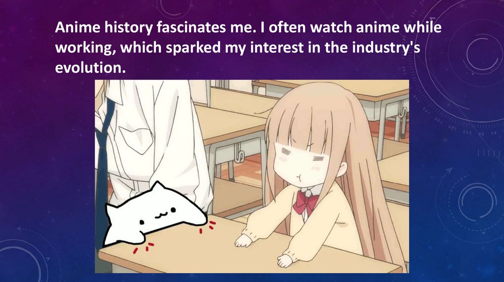 Anime history fascinates me. I often watch anime whileworking, which sparked my interest in the industry's