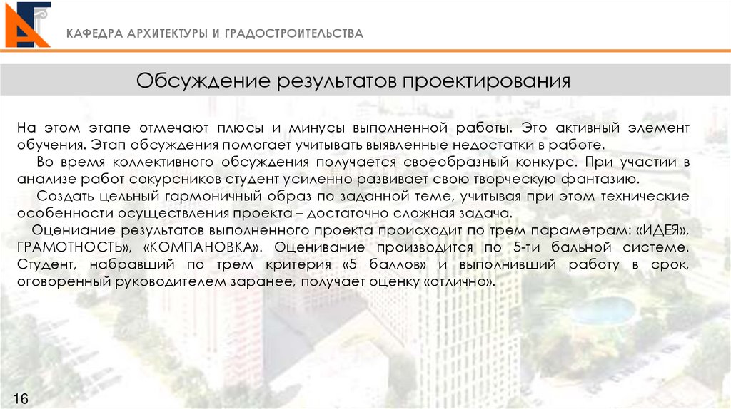 КАФЕДРА АРХИТЕКТУРЫ И ГРАДОСТРОИТЕЛЬСТВАОбсуждение результатов проектирования