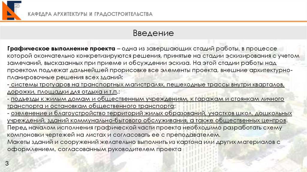 КАФЕДРА АРХИТЕКТУРЫ И ГРАДОСТРОИТЕЛЬСТВАВведение