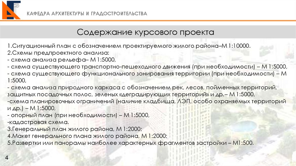 КАФЕДРА АРХИТЕКТУРЫ И ГРАДОСТРОИТЕЛЬСТВАСодержание курсового проекта