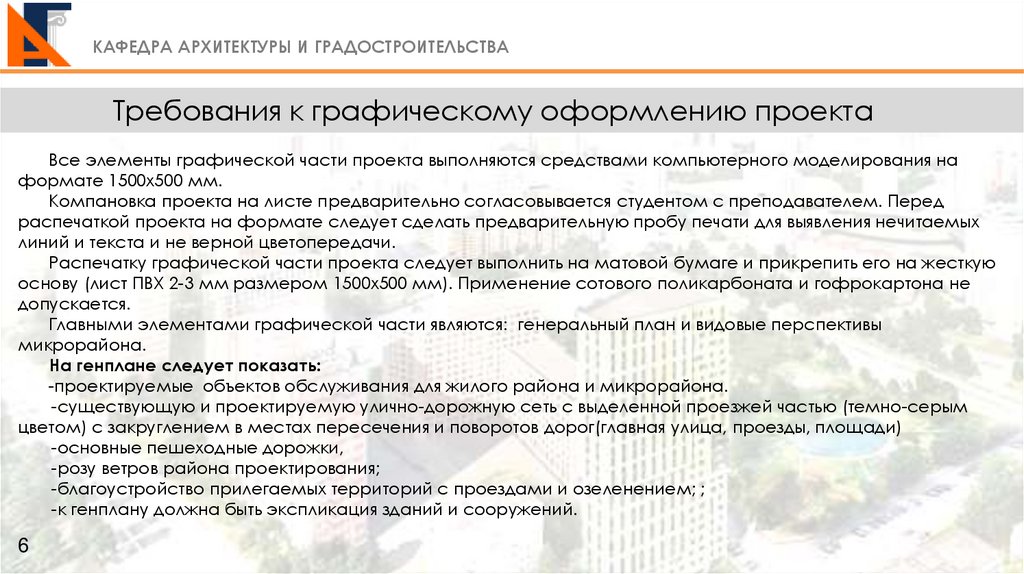 КАФЕДРА АРХИТЕКТУРЫ И ГРАДОСТРОИТЕЛЬСТВАТребования к графическому оформлению проекта