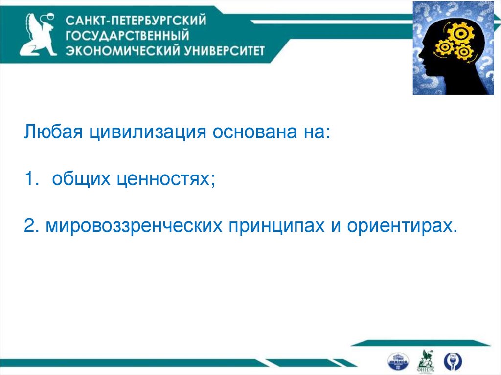 • Идеология «собирает» в себя ценности цивилизации,формирует цивилизационную общность.