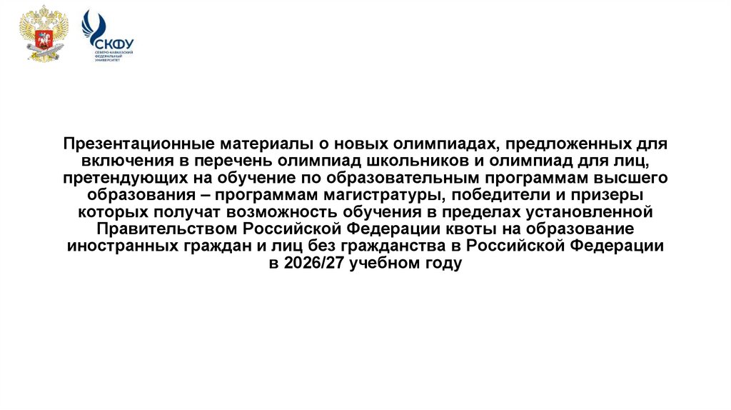 Презентационные материалы о новых олимпиадах, предложенных длявключения в перечень олимпиад школьников и олимпиад для лиц,