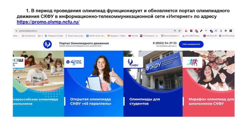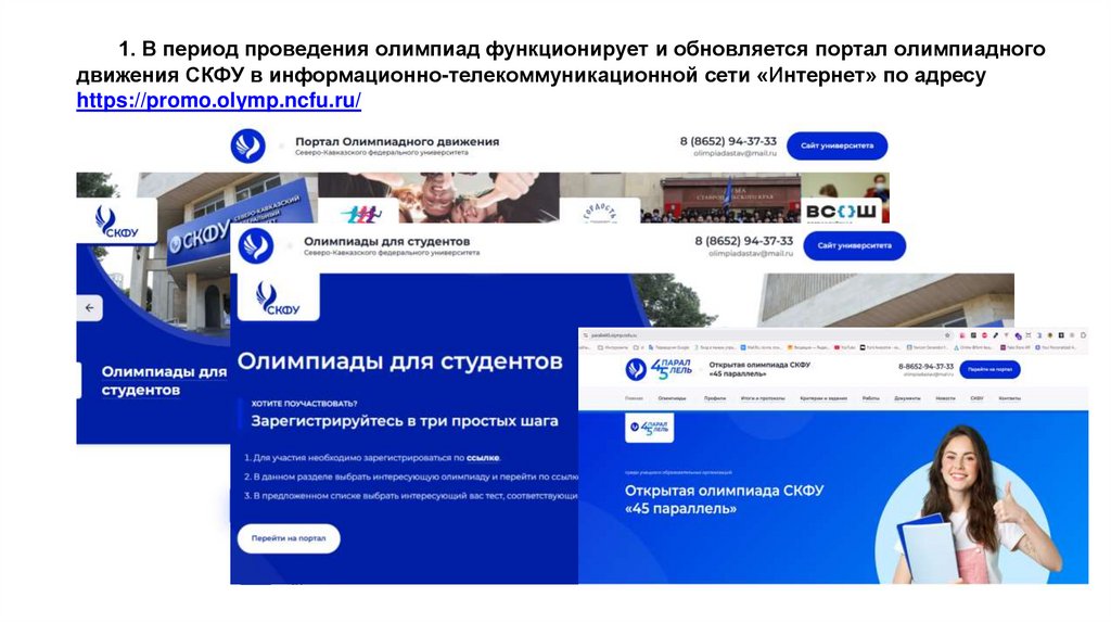 1. В период проведения олимпиад функционирует и обновляется портал олимпиадногодвижения СКФУ в информационно-телекоммуникационной сети «Интернет» по адресу