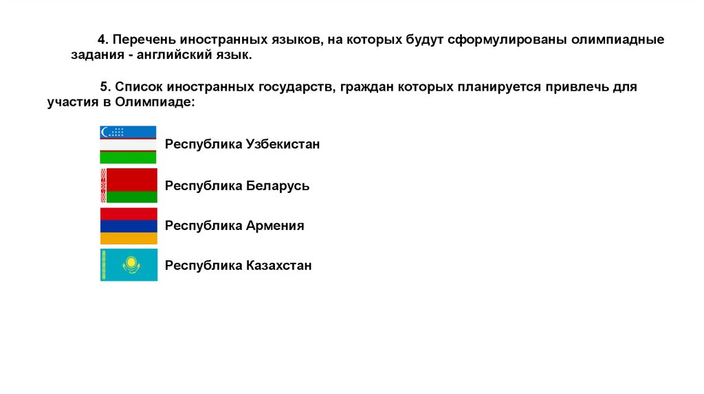 4. Перечень иностранных языков, на которых будут сформулированы олимпиадныезадания - английский язык.