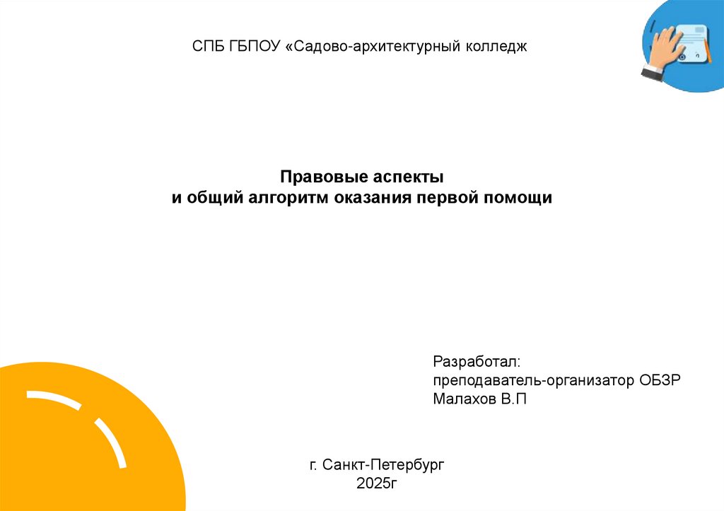 СПБ ГБПОУ «Садово-архитектурный колледжПравовые аспекты