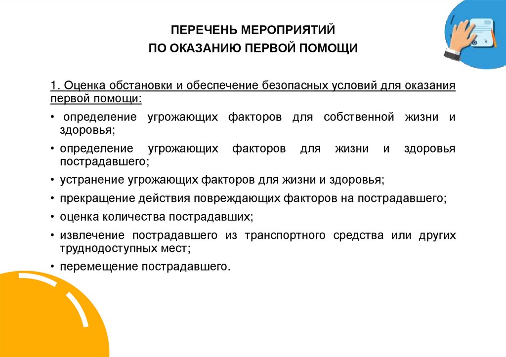 ПЕРЕЧЕНЬ МЕРОПРИЯТИЙПО ОКАЗАНИЮ ПЕРВОЙ ПОМОЩИ