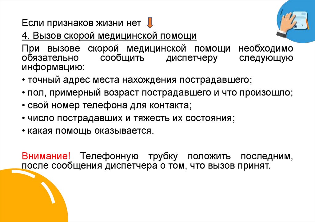 Если признаков жизни нет4. Вызов скорой медицинской помощи