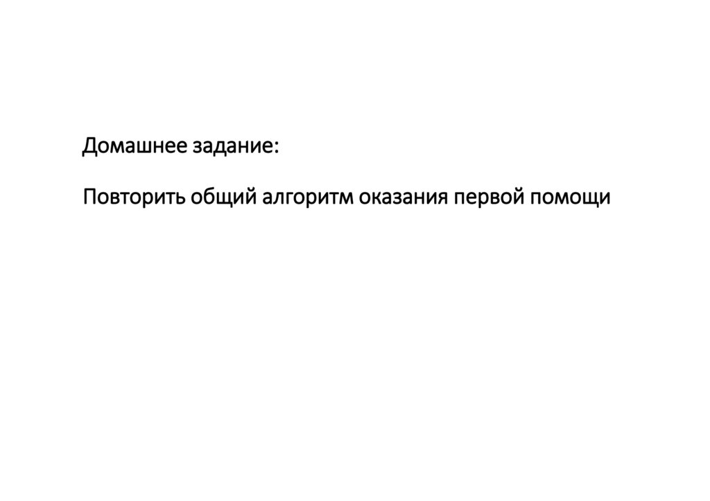 Домашнее задание:Повторить общий алгоритм оказания первой помощи
