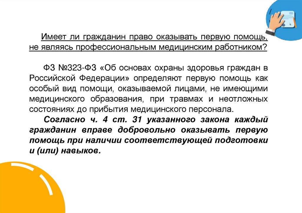Имеет ли гражданин право оказывать первуюпомощь, не являясь профессиональным